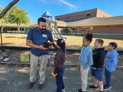 Recognizing many younger students had no idea where their food came from or how it was produced, the school organized for the third-grade class to meet with Diaz from Mockingbird Farmstead.
