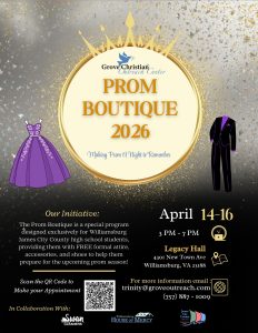 WILLIAMSBURG – Organizers for the Grove Christian Outreach Center are prepared for this year’s Prom Boutique, focusing on organization, community support, and creating meaningful experiences for students preparing for prom.