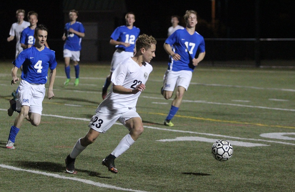 After bouncing off the feet of two players, the ball landed at the feet of Smithfield’s Gunnar Copeland, who easily finished the ball in the back of the net.