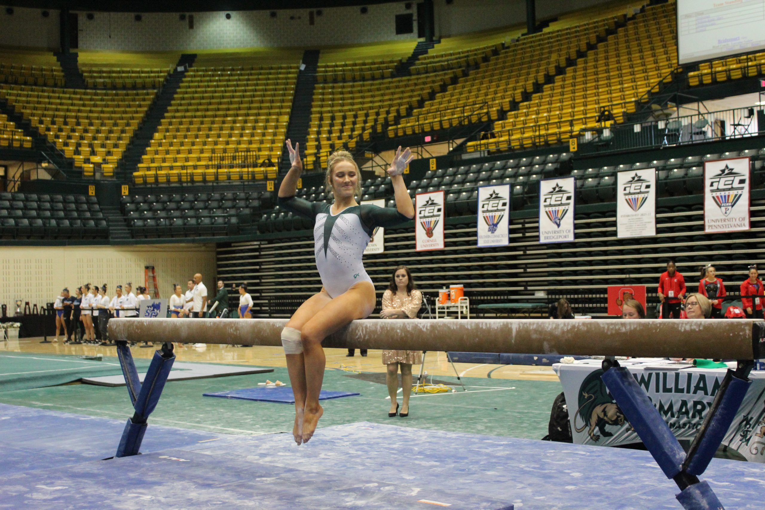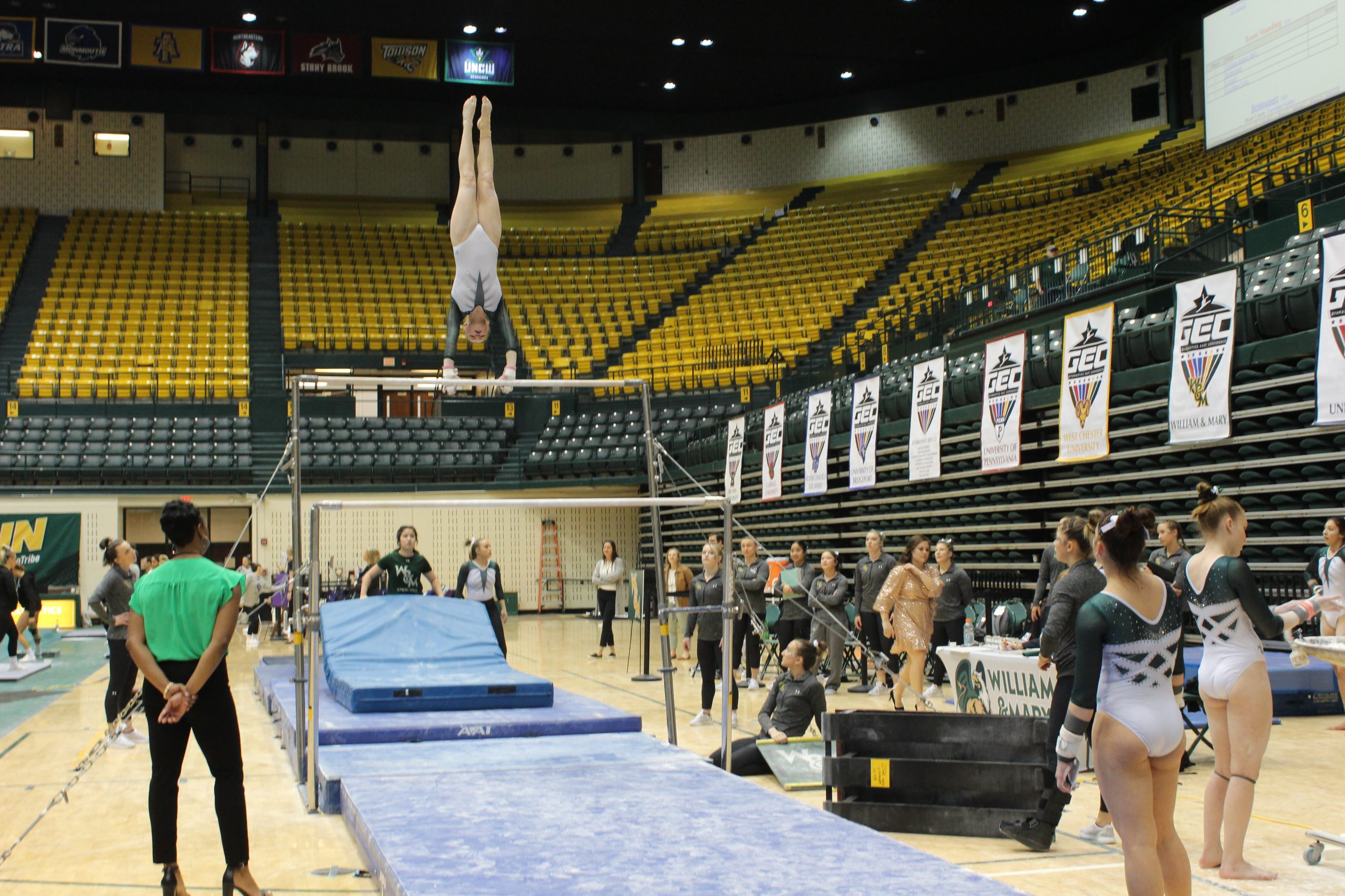 WILLIAMSBURG– Flips and tumbles galore were taking place at Kaplan Arena as the College of William and Mary welcomed all women’s gymnastics teams from the Gymnastics East Conference (GEC) for GEC Championship weekend on Mar. 17 and 18.