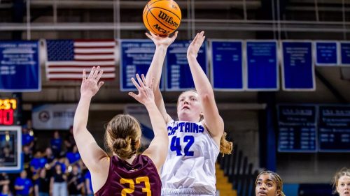 The Captains led wire-to-wire, jumping out to a 14-2 lead in the first seven minutes. Snively tipped the Captains ahead by ten with a triple from NBA range and the lead would never dip back into single digits. After trading a couple of baskets, the Captains scored 10 straight to take a 20-point edge by the end of the opening quarter, 26-6. A heave at the buzzer by Abby Plaugher trimmed to 17 for a moment, but at the start of the second quarter, Hailey Kellogg drilled a three-pointer to swing it back to 20.