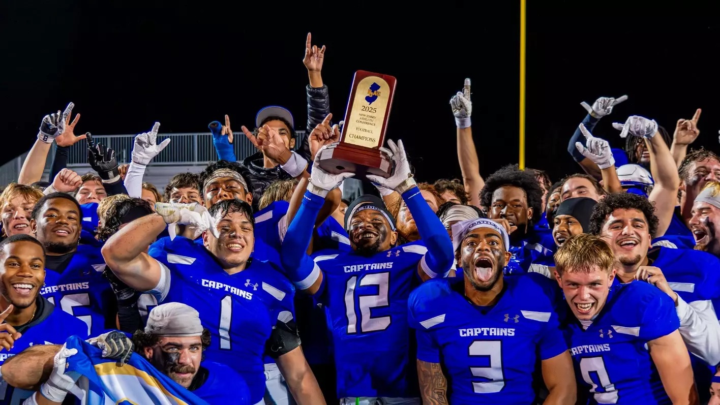 Paul Crowley‘s squad, 9-0 overall and 6-0 in the NJAC, has already matched the program mark for wins in a season with nine, and the Captains Saturday became the highest-scoring team in program history, having scored more than 40 points in every game except the opener, a 38-7 triumph over Trine University. Saturday’s victory clinched the New Jersey Athletic Conference title, and the automatic bid to the NCAA Tournament that comes with it.