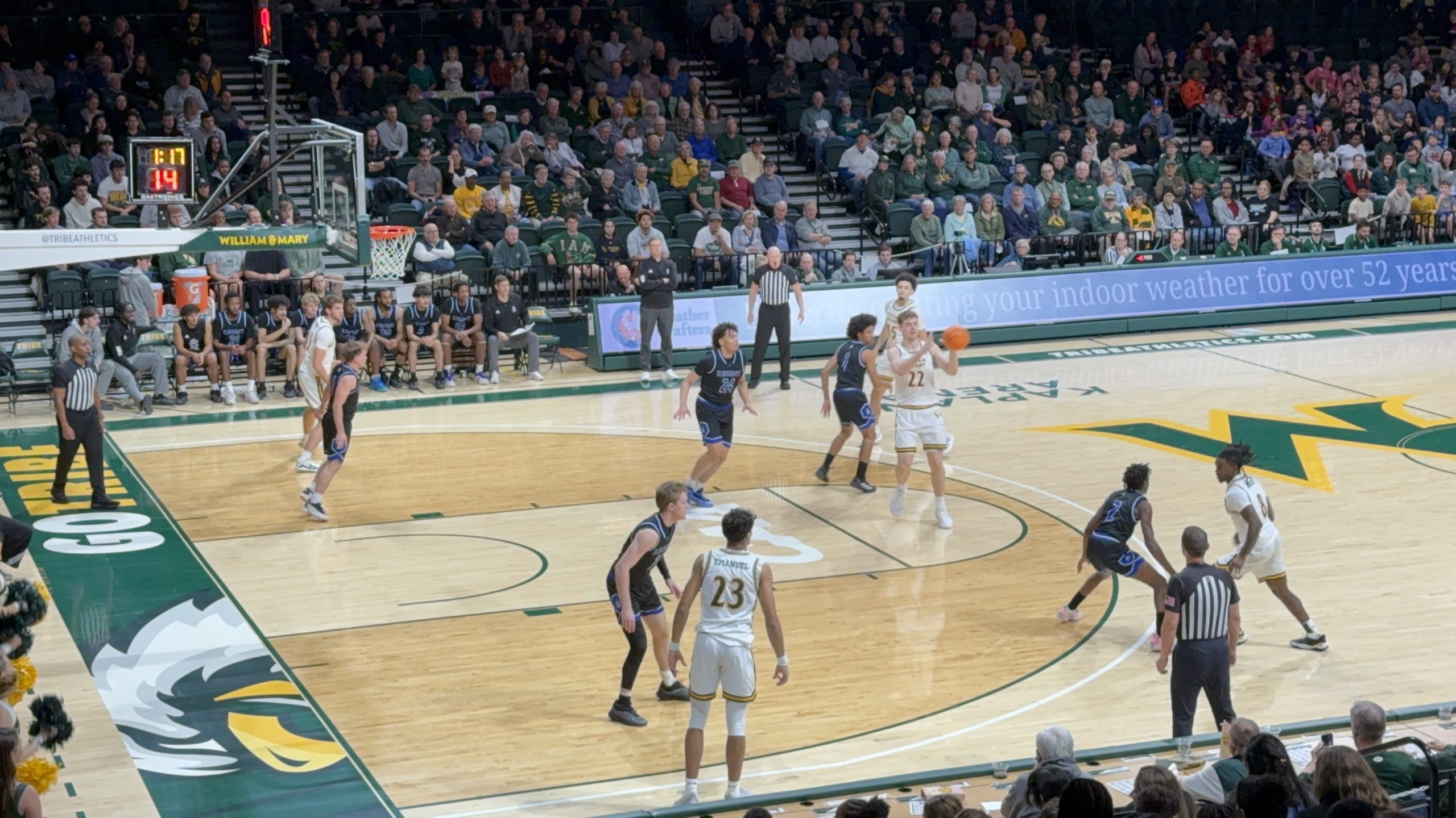 The Tribe (4-2) reached the century mark for the second time this season and dominated with 25 assists on 37 field goals. W&M displayed strong shooting, connecting at a 52.9% clip (37-of-70) from the field and 12-of-35 from beyond the arc (34.3%). They capitalized on Regent’s 18 turnovers, scoring 28 points off turnovers. The Tribe also dominated in the paint with 46 points and received significant contributions from the bench, adding 52 points.