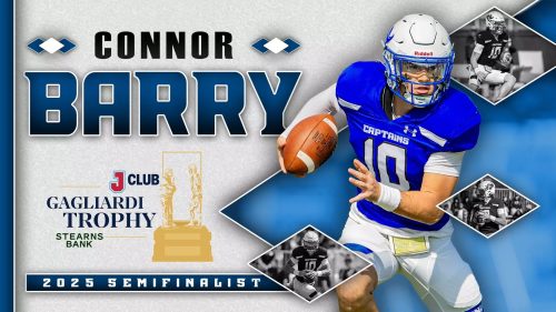 Barry, from Vienna, Va., is one of 15 semifinalists for the Gagliardi Trophy, which has been awarded annually since 1993. The honor goes to the most outstanding NCAA Division III football player and recognizes excellence in athletics, academics, and community service. The award is named after John Gagliardi, Saint John’s University legendary Hall of Fame head football coach who passed away at the age of 91 in 2018. Gagliardi retired in 2012 with 489 career victories, the most in college football history. The announcement Friday was made by the J-Club, a dues-based booster organization at Saint John’s consisting of former student-athletes, parents, and fans.