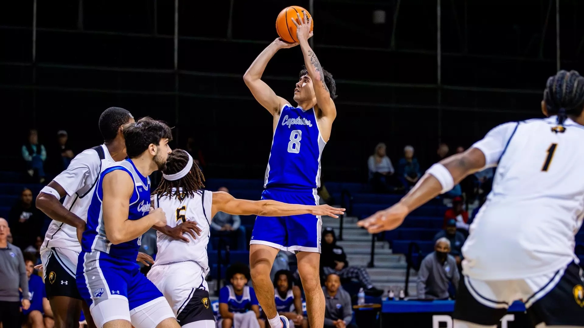 Christopher Newport’s defense held Rowan to just 31 percent shooting, and CNU was dominant on the glass, out-rebounding the Profs, 53-36. Junior Ethan Ward led the Captains with a dozen boards and junior Ryan Derderian posted eight.