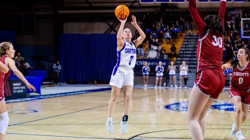As a team, the Captains shot 43.8 percent (28-64) and hauled in 16 offensive rebounds. The Captains’ depth reigned over the Knights as Southern Virginia got just four of its 55 points from bench players while the hosts scored 33 bench points. Facing a talented front court by the Knights, the Captains outrebounded the visitors by three an were led by a season-high eight boards from Noelle Cabiness. She added a pair of blocked shots and the Captains recorded six swats in the matchup with Dornak and McKenzie each adding a couple each.
