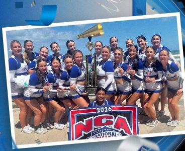 With a score of 96.2199 in the finals on Saturday, the Captains celebrated the top performance at the NCA College Nationals in the Ocean Center Arena in Daytona, Florida. Christopher Newport was crowned at the Bandshell during a 2:00 p.m. awards ceremony as the Captains edged out Bridgewater State University with a 95.9213 for the championship.